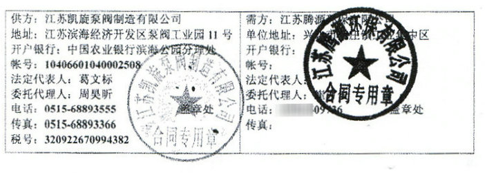 江蘇凱旋泵閥制造有限公司與江蘇騰原環(huán)保有限公司簽訂