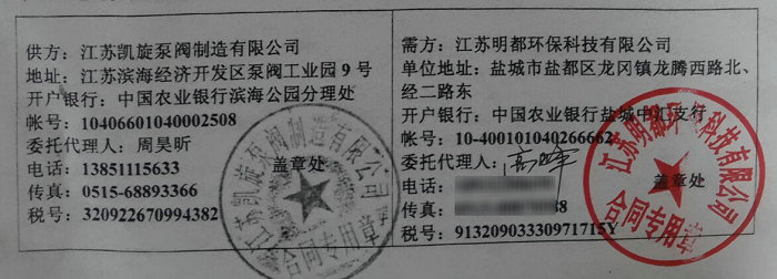 江蘇凱旋泵閥制造有限公司與 江蘇明都環(huán)保科技有限公司簽訂