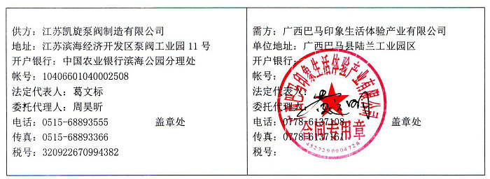 江蘇凱旋泵閥制造有限公司與廣西巴馬印象生活體驗(yàn)產(chǎn)業(yè)有限公司簽訂