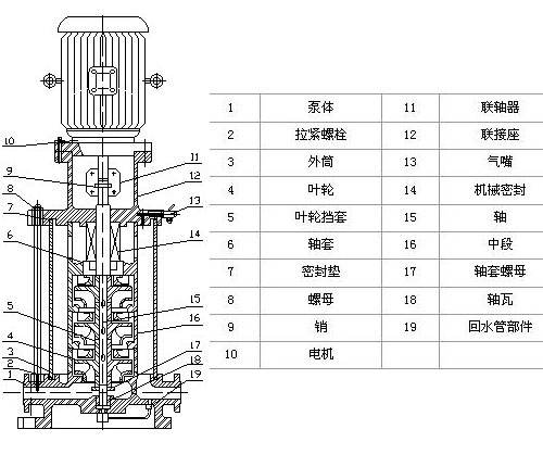 GDL型立式多級管道離心泵產(chǎn)品結(jié)構(gòu)圖