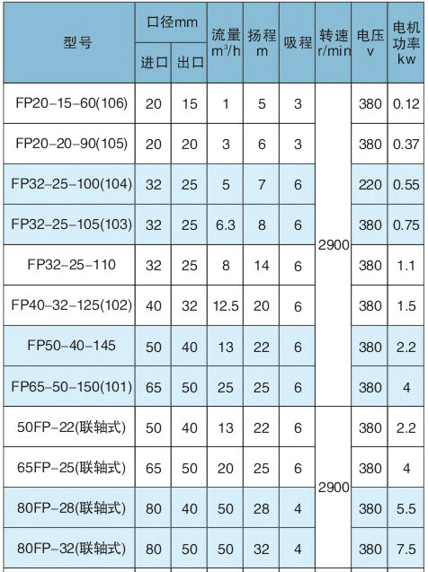 FP型工程塑料離心泵概述FP型工程塑料離心泵產(chǎn)品均采用機械密封、重量輕、體積小、壽命長等特點,廣泛應(yīng)用于化工,食品、制藥、電鍍、造紙、環(huán)保、水處理等部門,輸送酸、堿、鹽等腐蝕性液體。