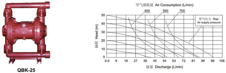 QBY-K-50新型工程塑料氣動隔膜泵不需灌引水,吸程高達7m,揚程達50m,出口壓力≥6kgf/c㎡。流動寬蔽,通過性能好,允許通過QBY氣動隔膜泵既能抽送流動的液體,又能輸送一些不易流動的介質(zhì),具有自吸泵、潛水泵、屏蔽泵、泥漿泵和雜質(zhì)泵等輸送機械的許多優(yōu)點。