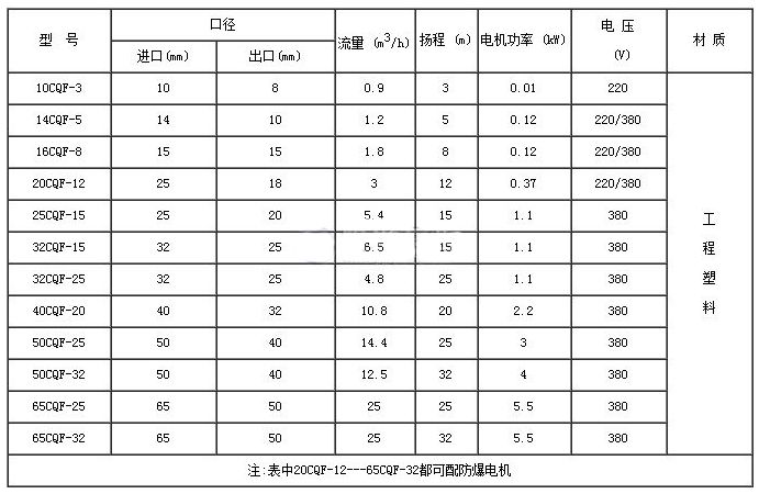 CQF型工程塑料磁力泵性能參數(shù):